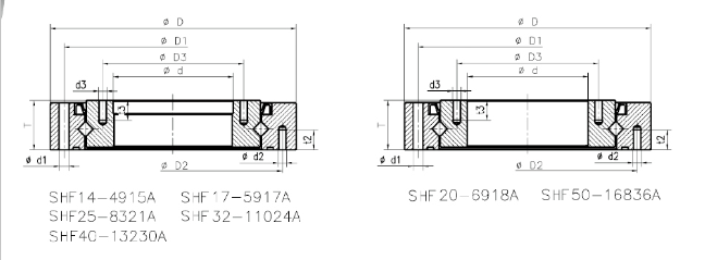 | SHF17-4216A | 47 | 80 | 17 | 74 | 74 | --- | 54 | 12-Φ3.5 | 4-M3 | --- | 20-M3 | --- | 5 | 0.5x45° | 10.4 | 14.2 | 0.39 | |