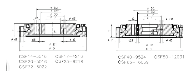 | CSF32(CSG32) | 26 | 112 | 22.5 | 104 | 55 | 40 | 34 | 16-Φ4.5 | 8-M10 | 8-M8 | 4-Φ5 | 4-Φ4.7 | 10 | 0.5x45° | 18.5 | 28.3 | 1.1 | |